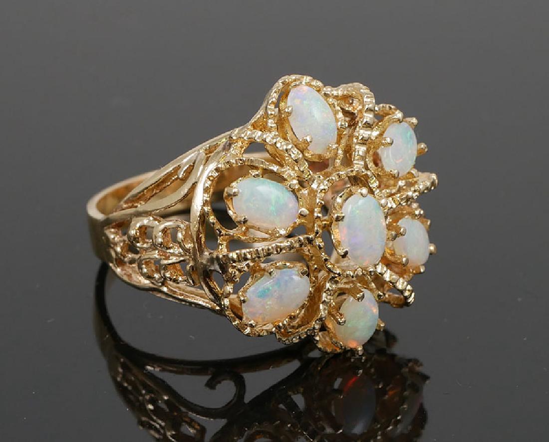 14k Yellow Gold Fiery Oval Opal Dome Cocktail Ring