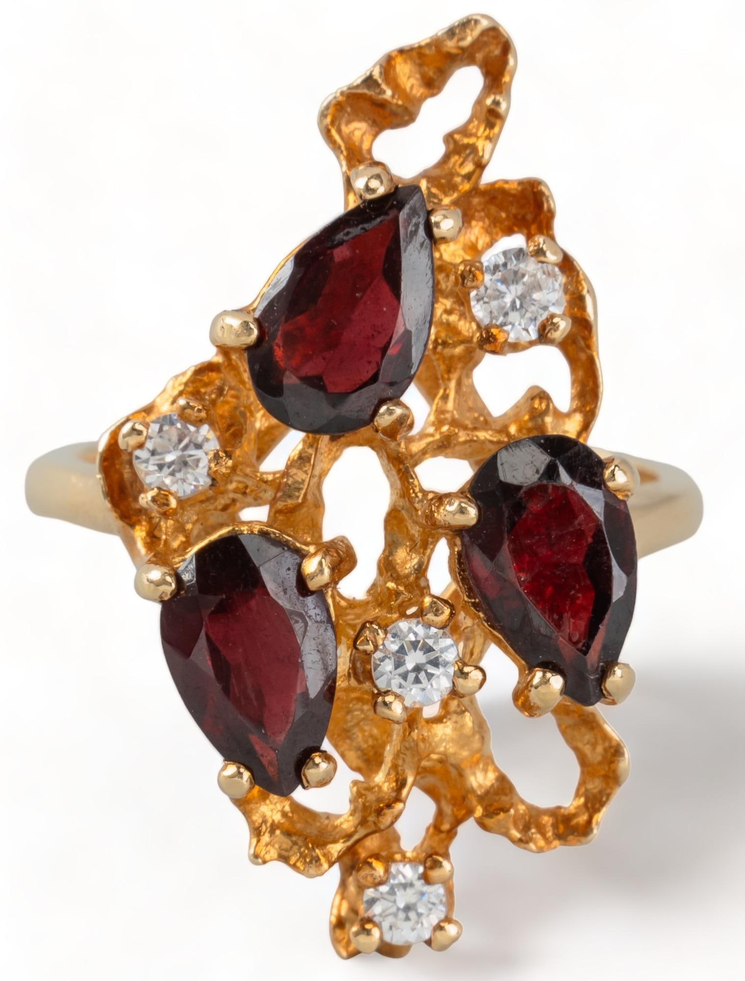 14K GOLD RING SET WITH CENTER GARNET, NATURAL RUBY SIDES AND DIAMONDS SZ: 7.25Modern Jewelry4.4(204)$1,3003 days Left