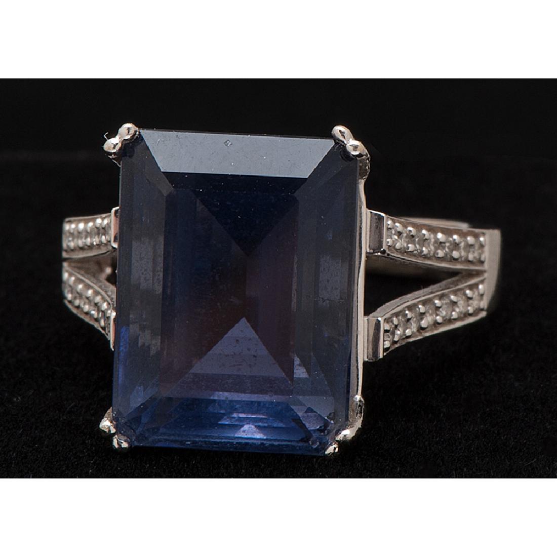 14k Gold Iolite and Diamond Ring
