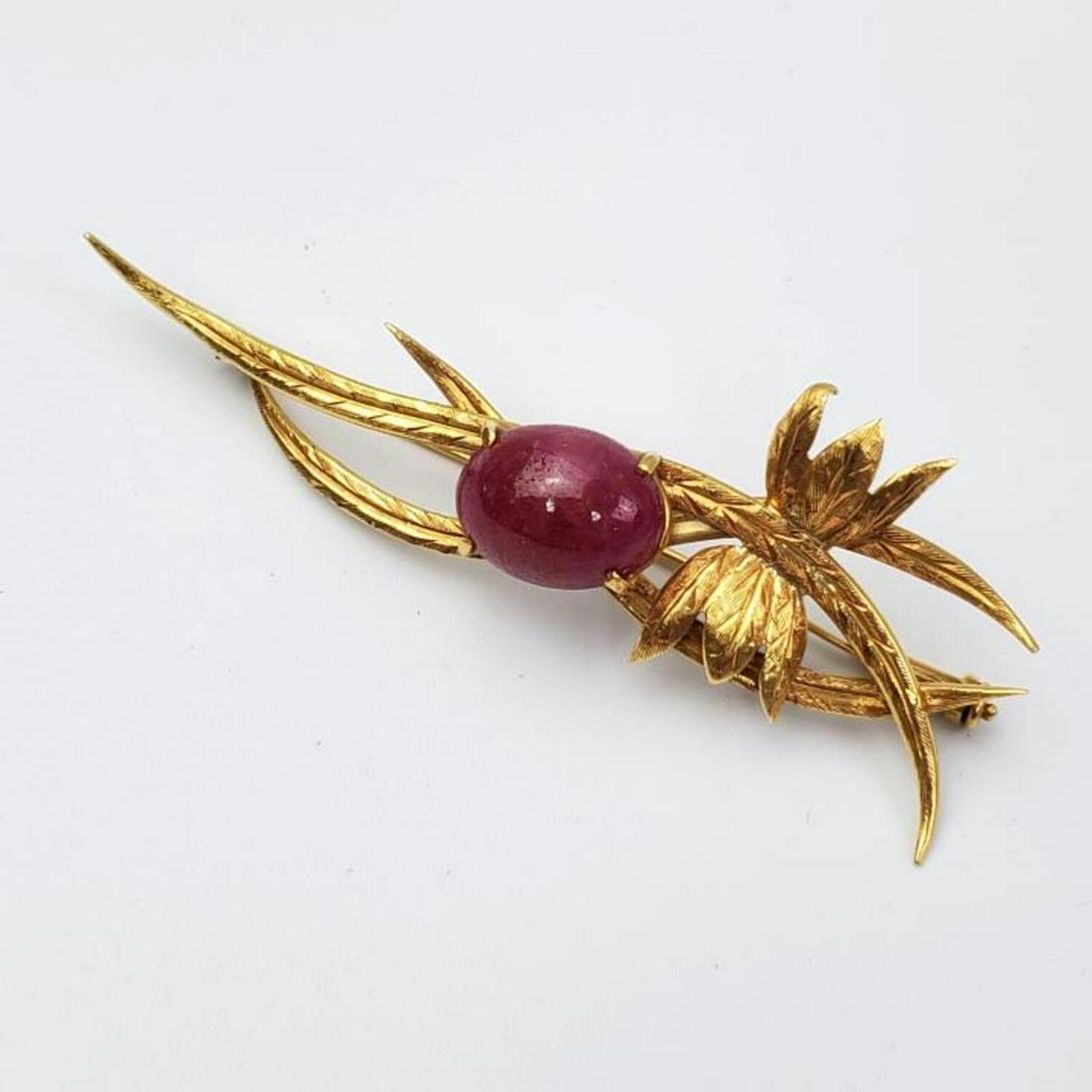 14k gold Large Brooch with a Large Probably. Ruby