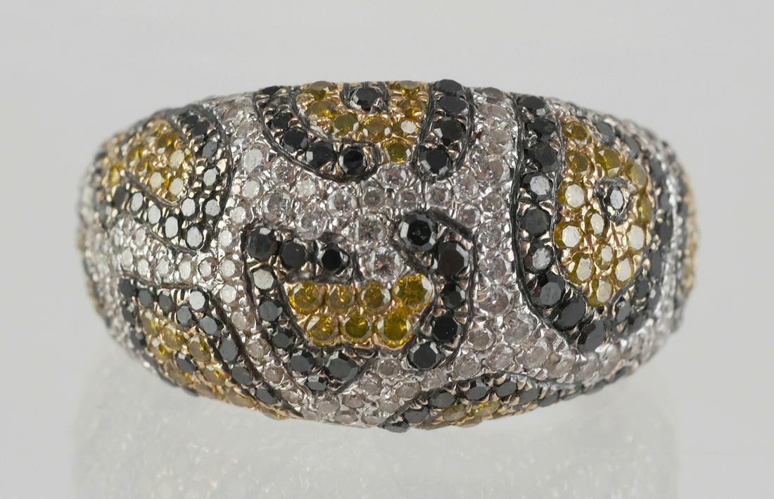 14k Gold Leopard Pattern Colored Diamond Ring