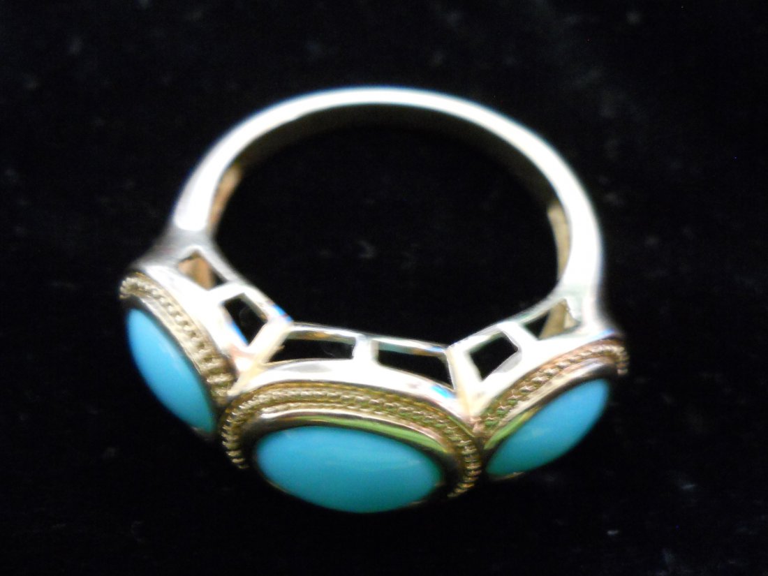 A Luminous 18kt Yellow Gold Ring with Central Cabochon Turquoise and Turquoise Beads, 9.21 grHIGH END GEMS & JEWELS LTD4.3(1)$1,1505 days Left