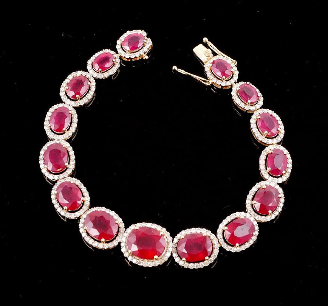 14K Gold 21.32ct Ruby 0.70ct Diamond Bracelet