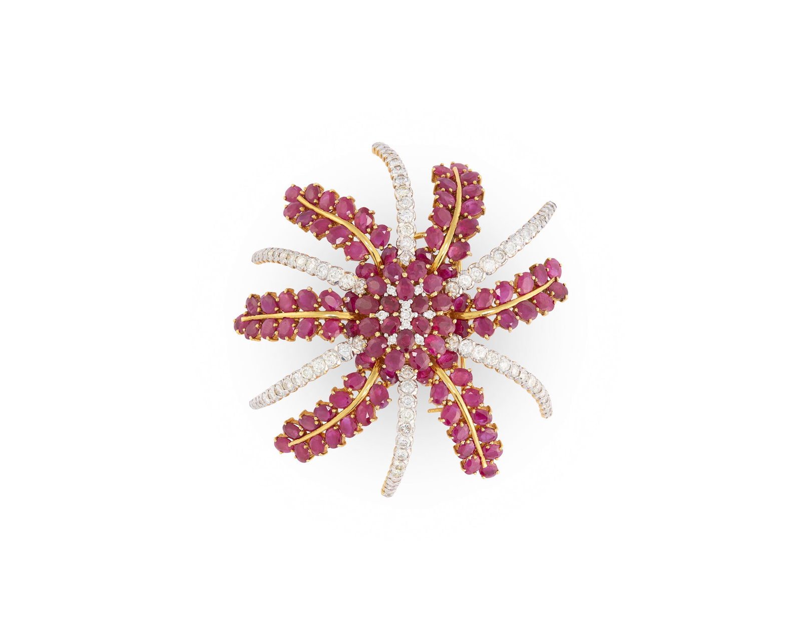 Platinum 11.10ct Diamond and Ruby Bow and Bloom BroochEastern European Art Gallery Inc$17,0002 days Left