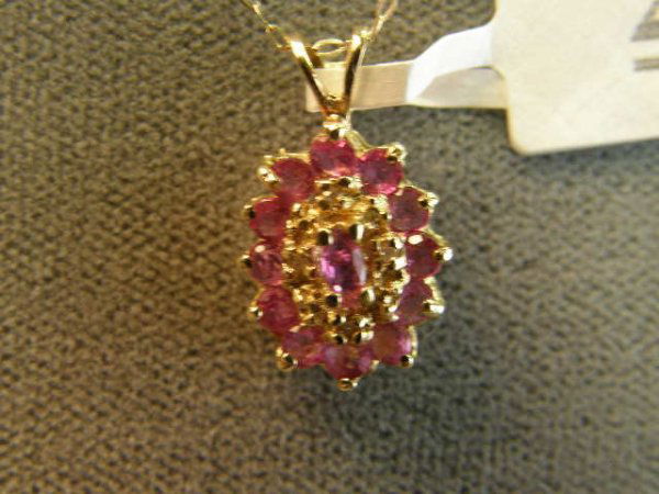 14K GOLD RUBY AND DIAMOND PENDANT ON CHAIN