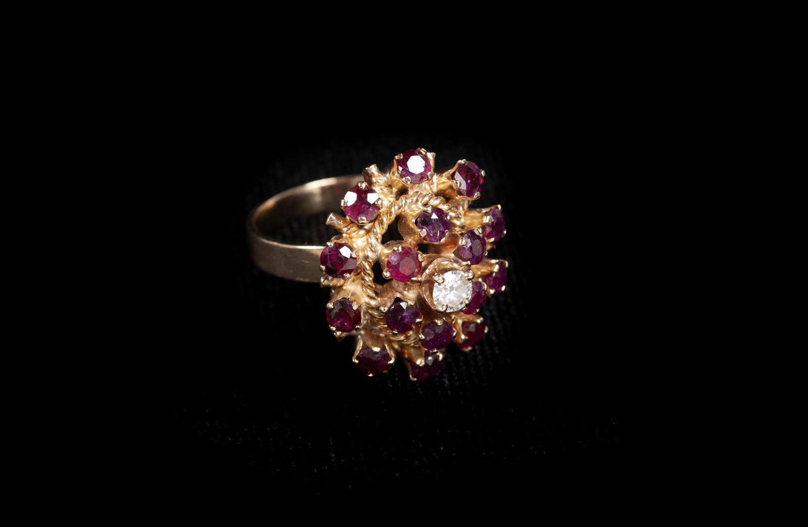 14K GOLD RUBY CLUSTER RING
