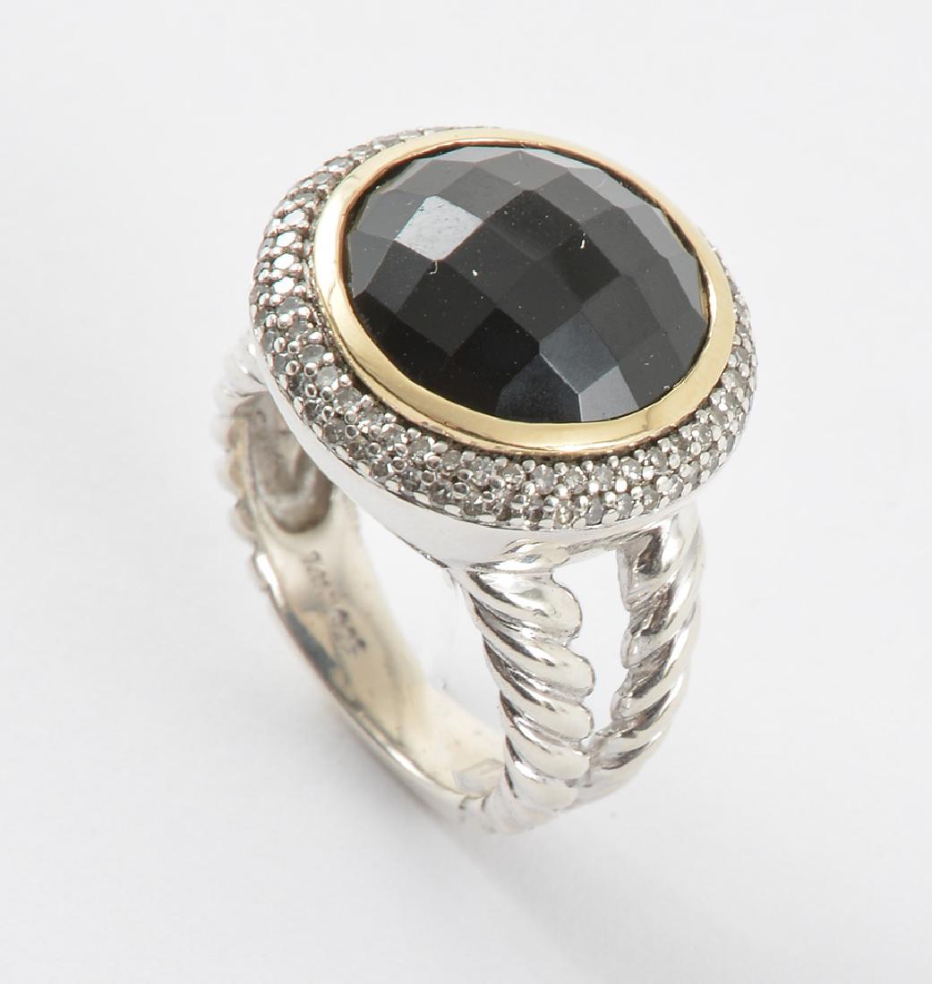 14K Yellow Gold Ring with Diamonds and Black Onyx