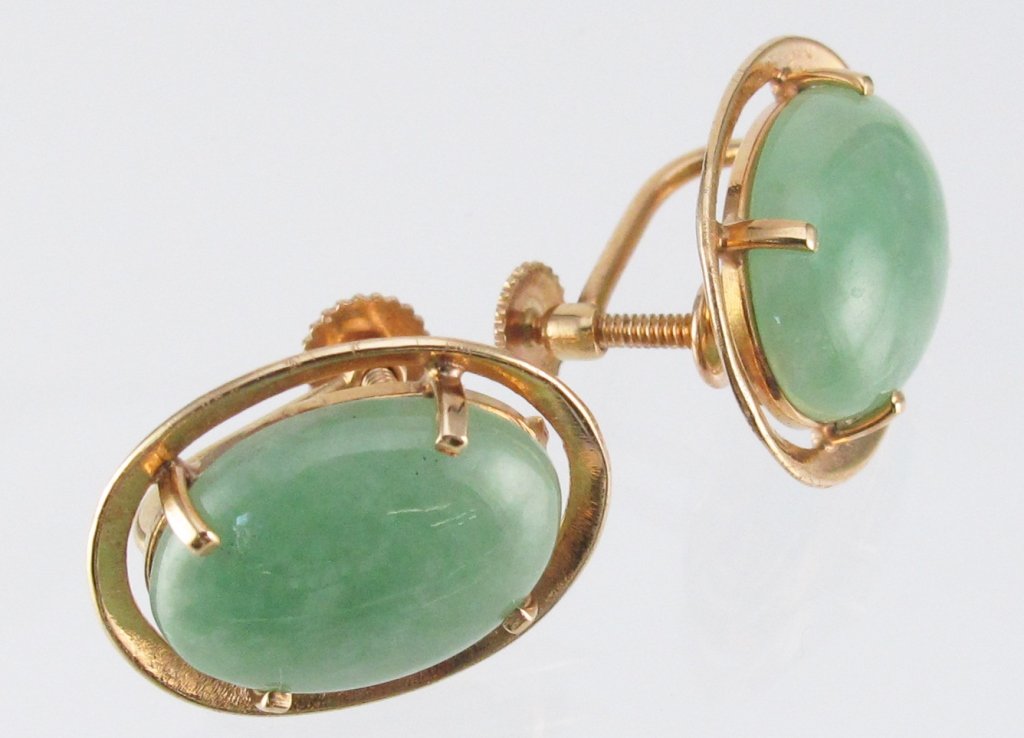 Vintage Oval Green Jade Stud Earrings 14K Yellow Gold Non-Pierced Clip On, 13 GrChairish Auctions4.5(10.3k)$550