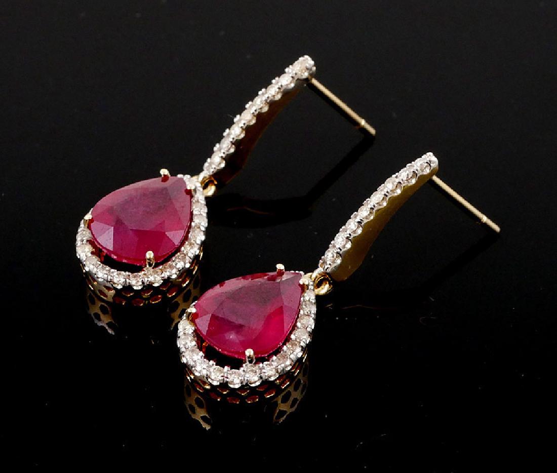 14k Yellow Gold 9.21ct Ruby 2.75ct Diamond Earrings