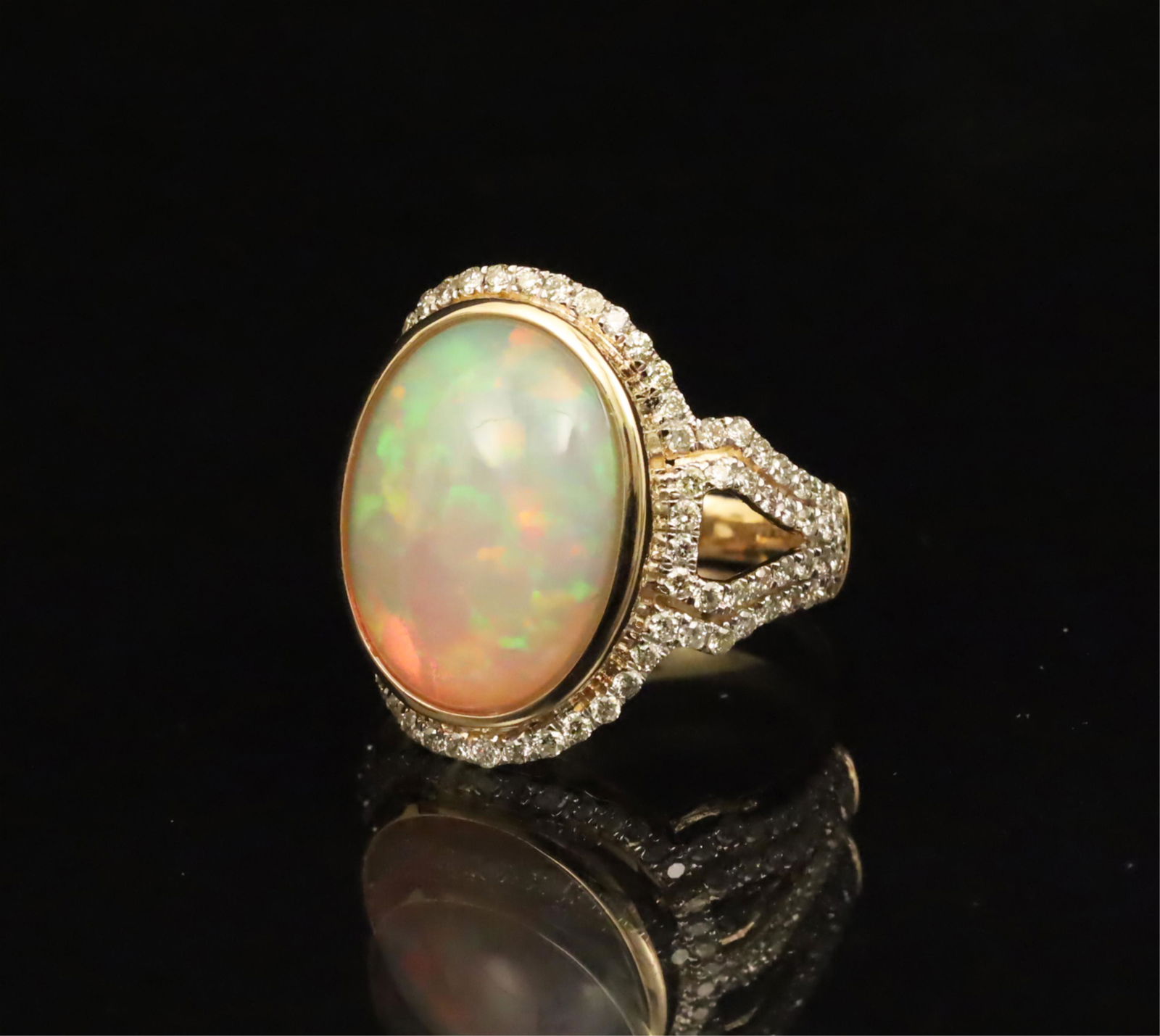 14k Yellow Gold 4.20ct Opal 1.10ct Diamond Ring