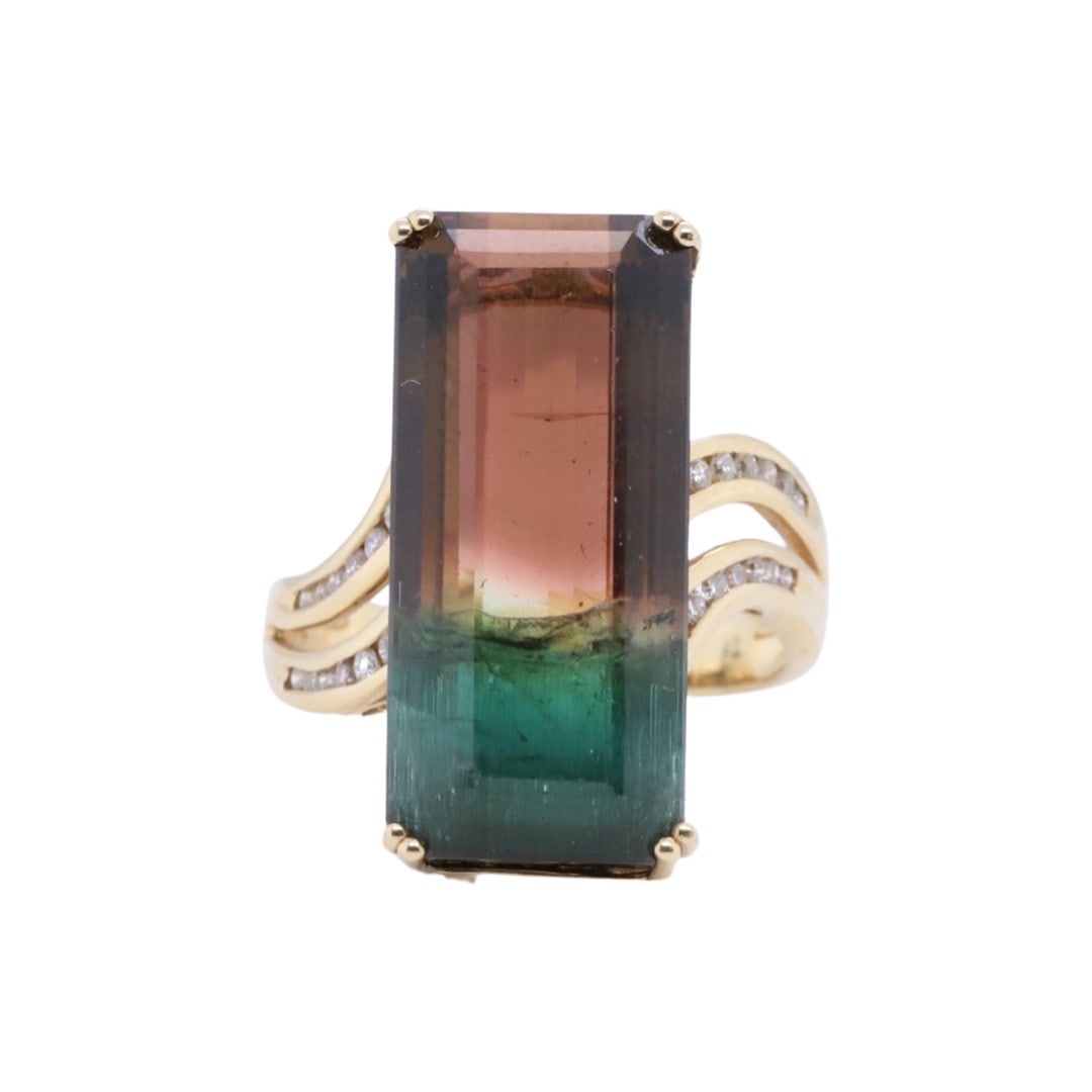14k Gold 8.22 Ctw Natural Tourmaline & Diamond Ring