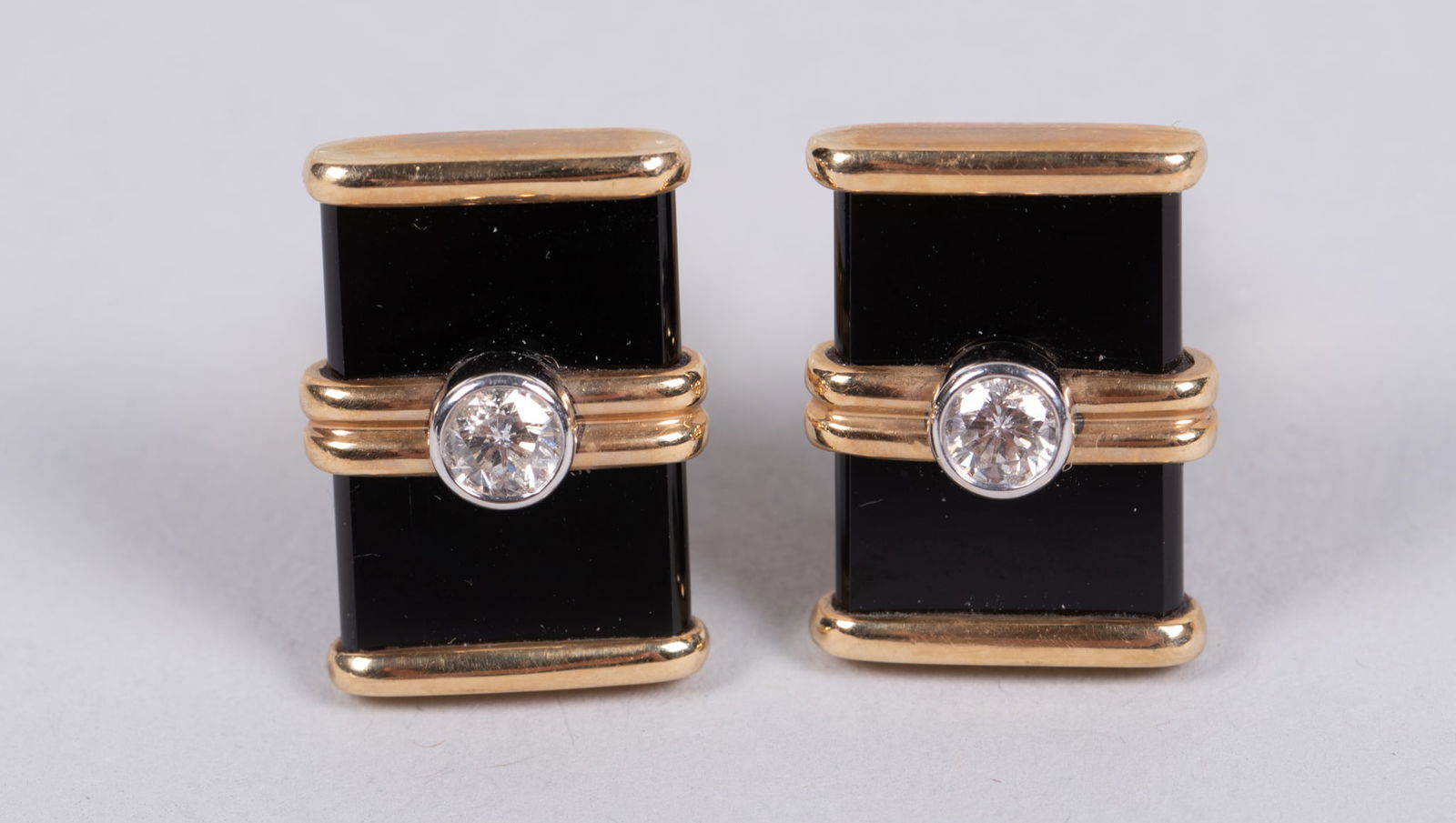 Vintage Geometric Black Onyx Diamond Drop Earrings 14K Yellow Gold, 9.82 GramVintage Tiger's Eye Diamond Cufflinks in 14K Yellow Gold, .24 CTW, 15.30 GramsVintage 1960's Black Onyx Green Serpentine Cufflinks 14K Yellow Gold, 13.65 Gr14kt Gold Onyx Studs & Cufflinks Set**Pair of Cufflinks with Onyx and Diamonds5 days Left14k Diamond Lemans Cufflinks - 10.3g TWApr 03, 2026Vintage 14k Gold Cufflinks with 0.38ct Round Diamonds4 days LeftBlack Diamond Stud Earrings 1.84Ct 14k Y/gMar 28, 2026A pair of onyx, silver, and 18k gold cufflinks5 days LeftDiamond and Onyx Cufflinks in Art Deco 18K Yellow Gold with Hallmarks20 hrs LeftAn onyx and 14k gold dress set3 days LeftBlack Diamond Stud Earrings 1.72Ct 14k Y/gMar 28, 2026Oval 18k Gold Cufflinks with Diamond and Onyx by Tiffany & Co.Mar 24, 2026Elegant Antique French 18K Yellow Gold Onyx Diamond Cufflinks3 days Left18k Gold Diamond Cushion Cufflinks with Matte Black Stone5 days LeftTASAKI DIAMOND ONYX EARRINGS CLIP ONMar 29, 2026