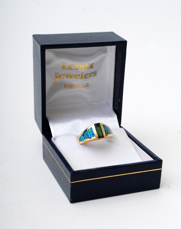 SoldKabana 1.10ct Tourmaline, Opal and 14K Ring W/DiamondsKabana 1.10ct Green Tourmaline, Inlaid Opal and 14K Yellow Gold Ring W/0.15ctw Diamond Accents - This lovely ring was made by Kabana, a New Mexico designer and manufacturer with fine jewelry creationsSee Sold Price