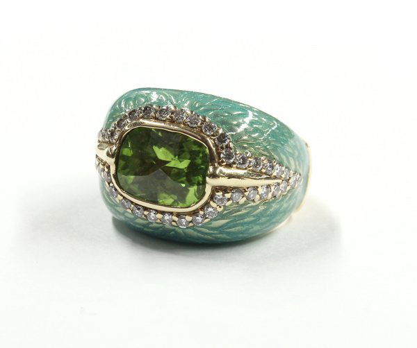 18K GOLD TWO TONED RING WITH PERIDOT AND 0.06CTS OF DIAMONDS 13 GRAMS SIZE: 7Modern Jewelry4.4(204)$2,5006 days Left