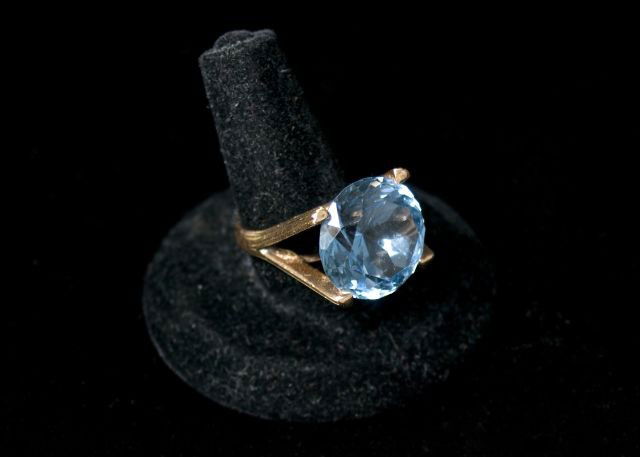 14k Gold ring with Blue Topaz and Diamonds