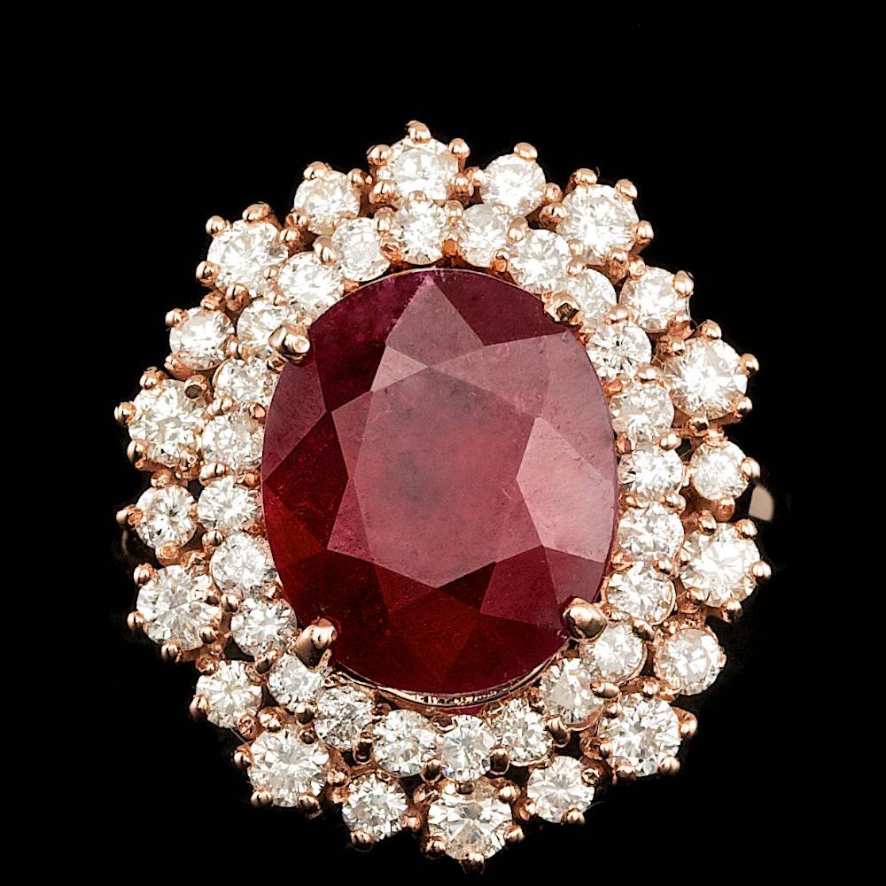 14K Rose Gold 10.91ct Ruby and 2.07ct Diamond Ring