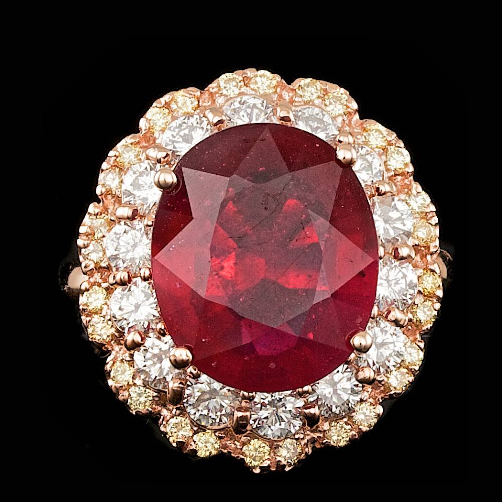 14K Rose Gold 10.91ct Ruby and 2.07ct Diamond Ring