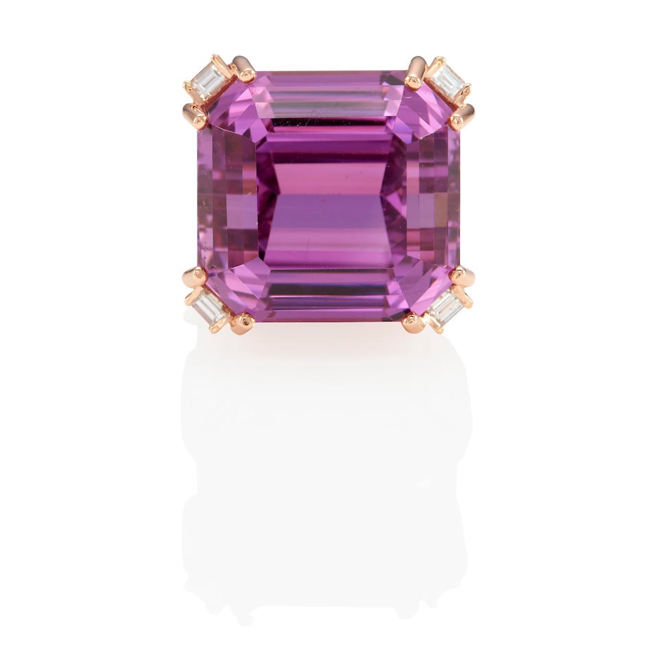 14K ROSE GOLD, KUNZITE AND DIAMOND RING