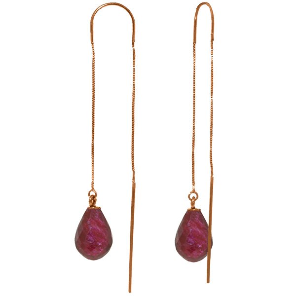 14K Rose Gold Threaded Dangles Earrings with Rubies