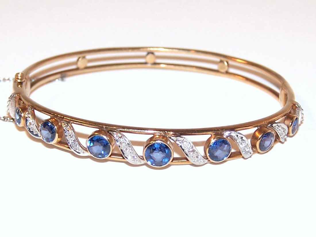 14K Sapphire & Diamond Bangle Bracelet
