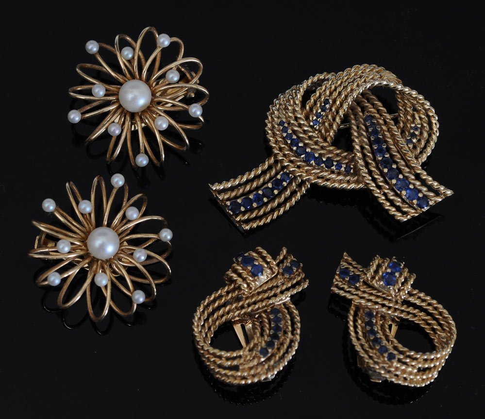 14k Sapphire Brooch and Earring Set