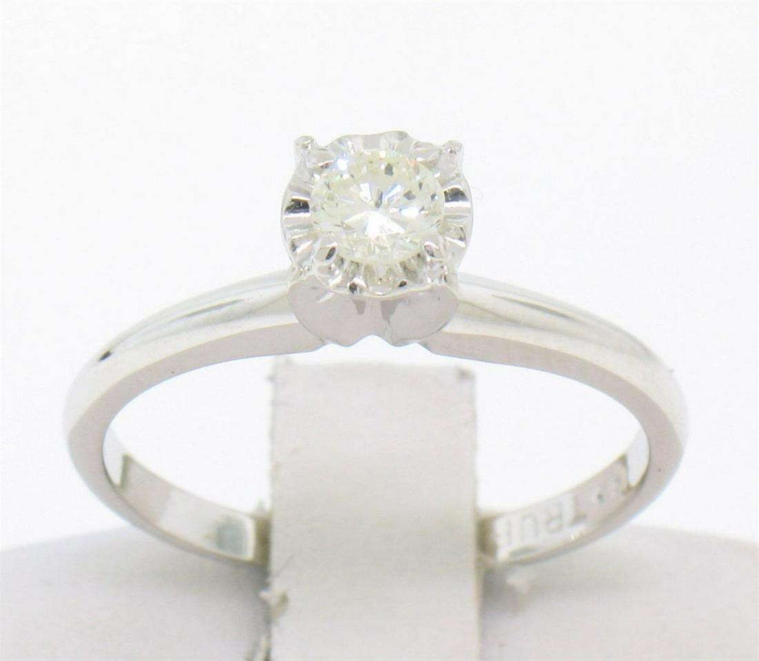 14k Solid White Gold 0.22 ctw Round White Diamond Illusion Set Solitaire Ring