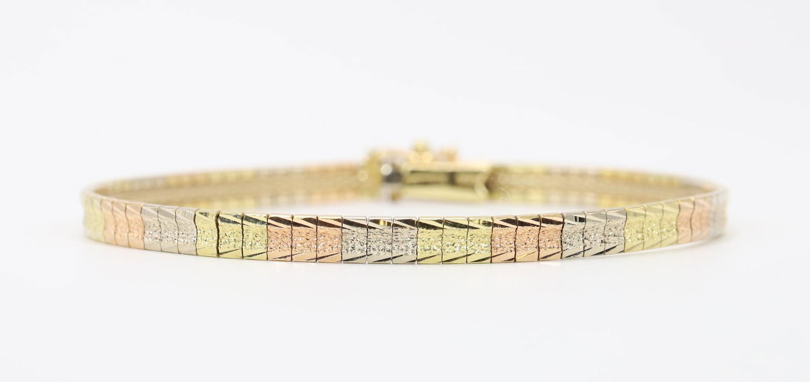 ESTATE ITALIAN 14KT TRI-COLOR TEXTURED GOLD BRACELET, 30 GRAMSAustin Auction Gallery4.7(1.2k)$1,500Feb 22, 2026