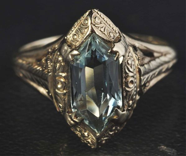 14k Gold 1.25ct Aquamarine 1.25ct Diamond Ring