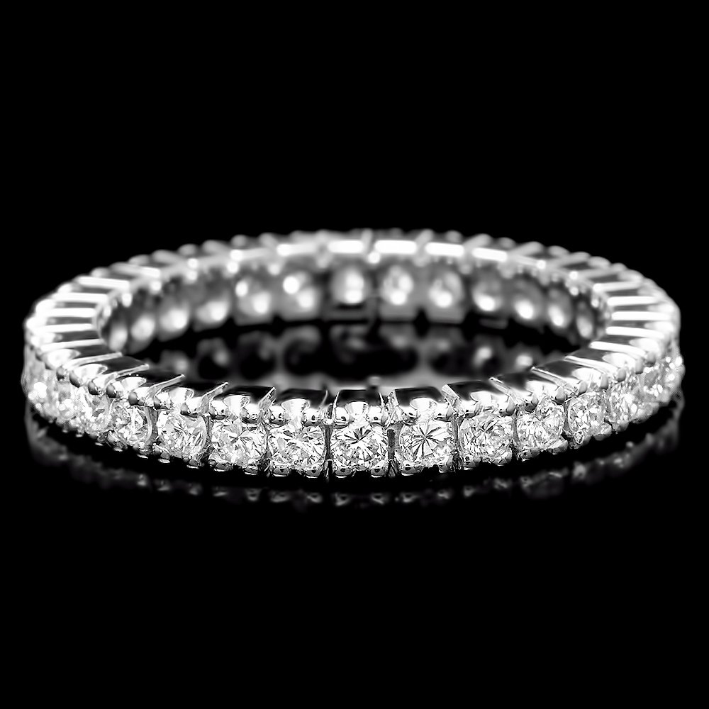 Sold14K White gold & diamond ring,14K White gold & diamond ring, having 15 round brilliant cut diamonds at 4.0 cts total weight. FG/I1, Stamped, "14K". 9.2 grams. Size: 5.75,See Sold Price