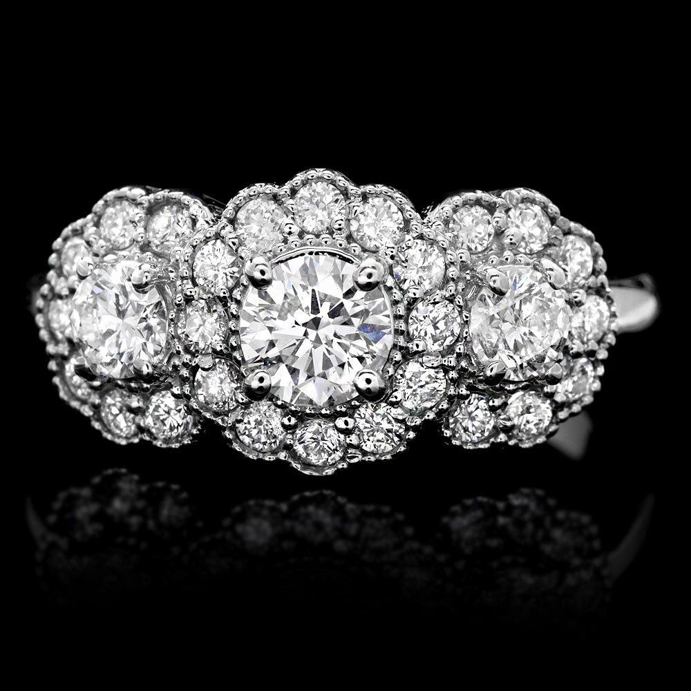 18K White Gold Ladies Ring with 1.24ct center Round Diamond and 1.19ct tw Adjacent DiamondsRiverside Galleries4.4(200)$503 days Left