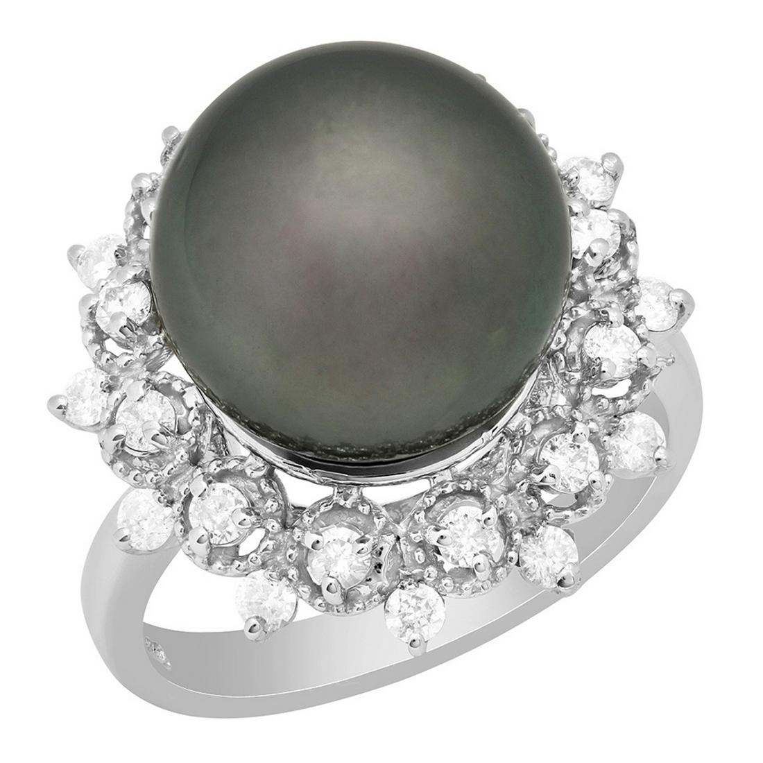 14K White Gold Setting with 13.5mm Tahitian Black Pearl and 0.21ct Diamond Ladies RingRiverside Galleries4.4(202)$505 days Left