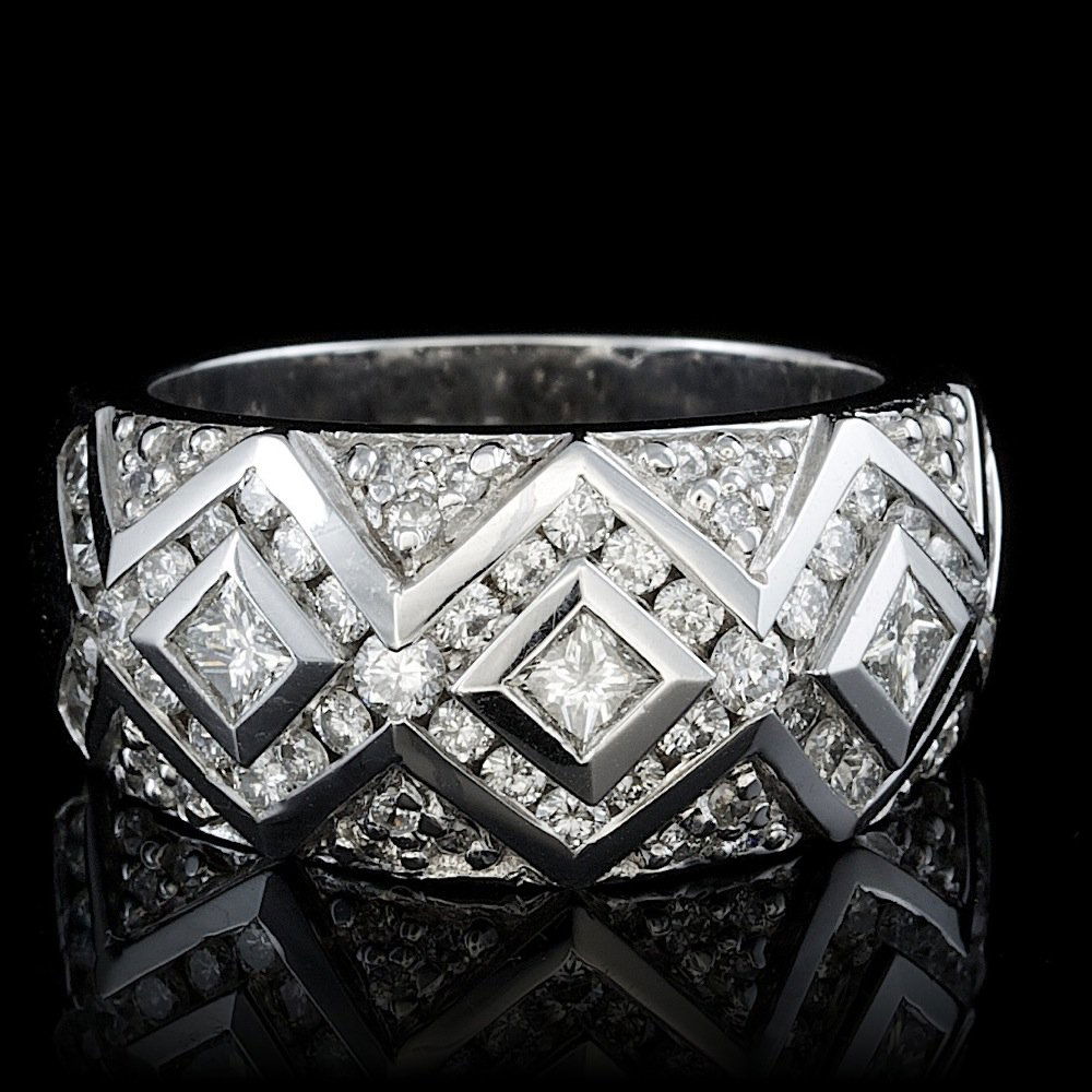 Elegant 14K White Gold Diamond Ring 67 Diamonds 1.60 Ct G-H VS1-SI2