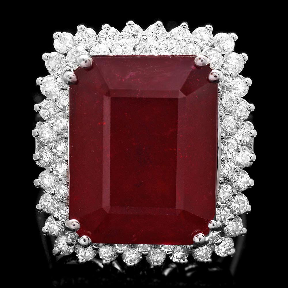 14k White Gold 20.00ct Ruby 1.45ct Diamond Ring