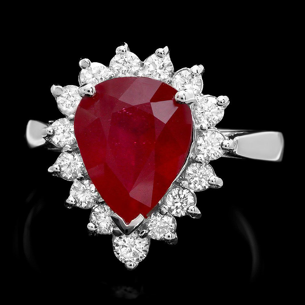 14k White Gold 4.50ct Ruby 1.40ct Diamond Ring