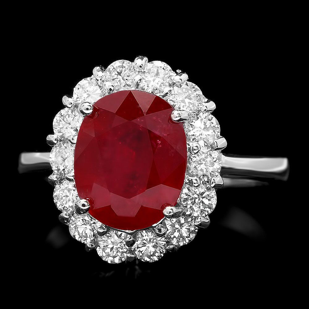 14k White Gold 4.50ct Ruby 1.40ct Diamond Ring