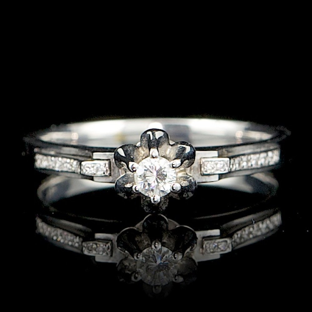 SoldStamped 14K White Gold Diamond Ring (1ct)Dimensions: 0.9" (2.2cm) Dia. Including a certificate of appraisal. 14K金鑲鉆石戒指(主鉆1ct)帶證書See Sold Price