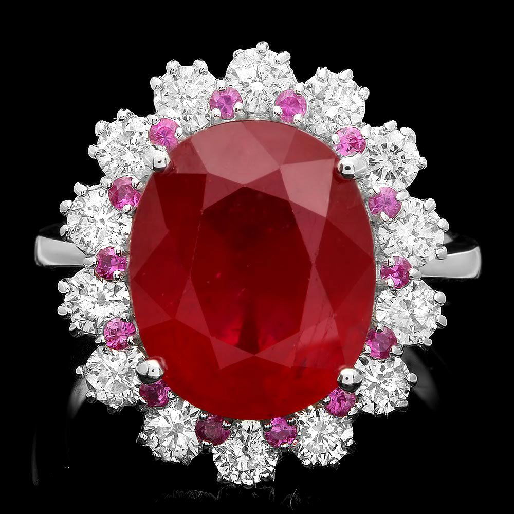 14k White Gold 7.00ct Ruby 2.3ct Diamond Ring