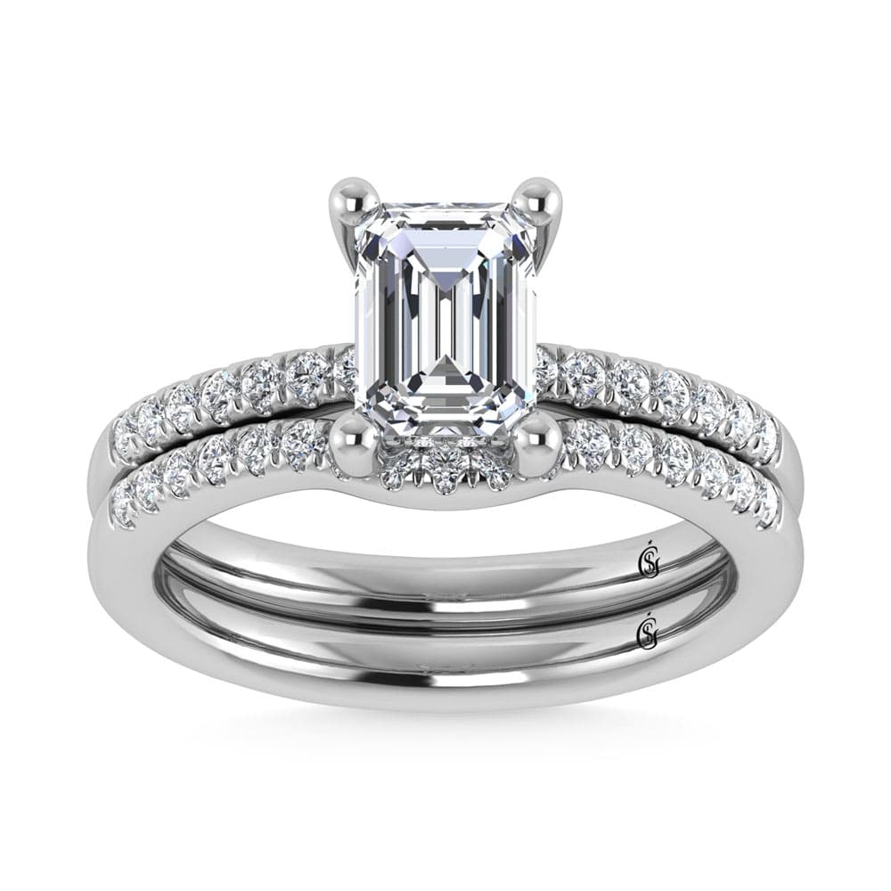 14K White Gold Lab Grown Diamond 1 3/4 Ct.Tw. Emerald Shape Hidden Halo Engagement Ring