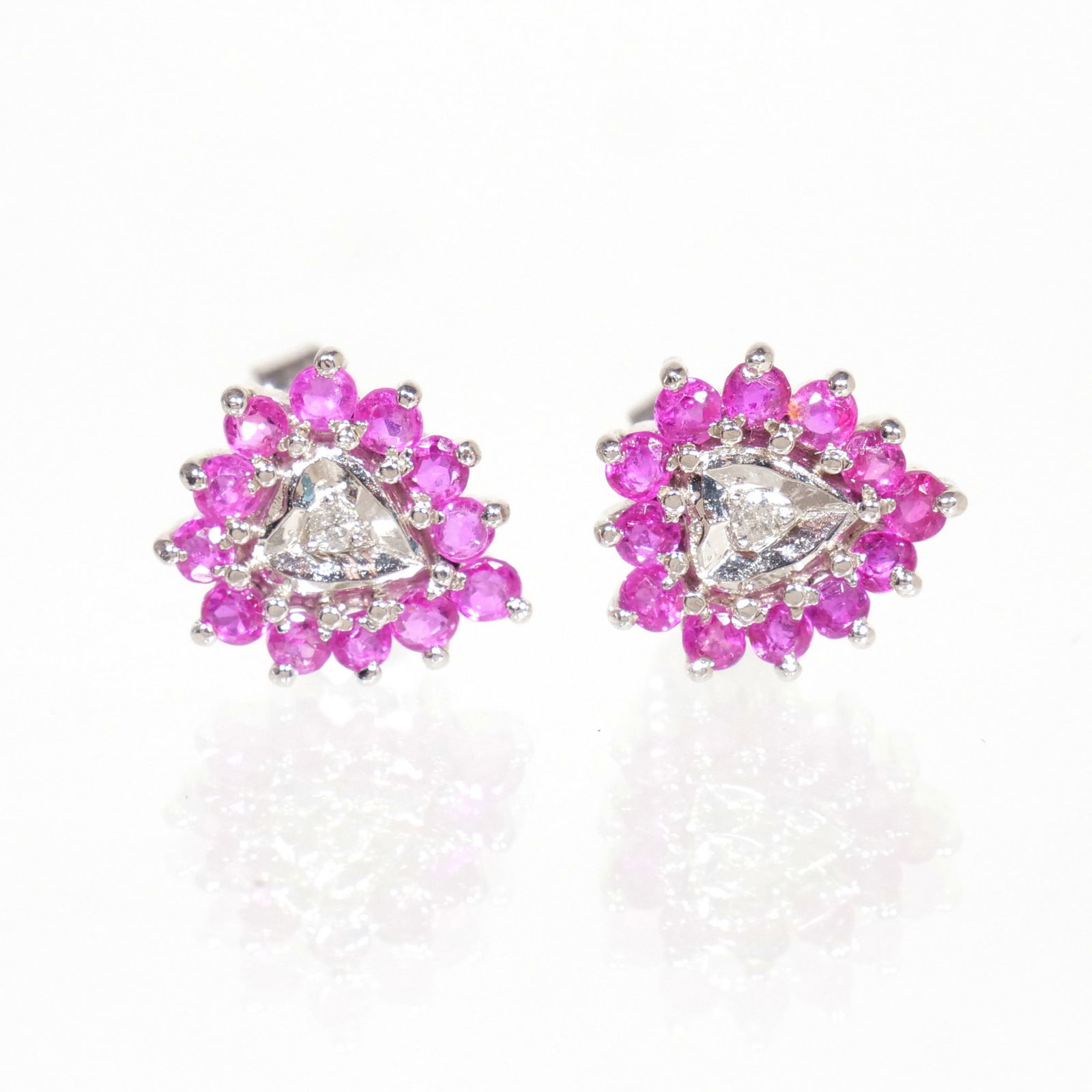 14k WHITE GOLD, RUBY & DIAMOND STUD EARRINGS