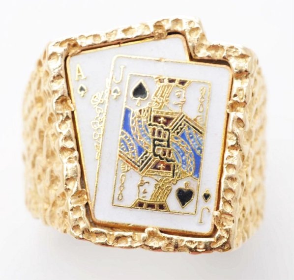 Sold14KY Gold Ring14KY Gold Ring, size 11, marked and tested 14K, total weight 34.4 grams Literature Brooks Auction is not responsible for outbids. Questions? Call the office at (856) 694-2960 or email us directly atSee Sold Price