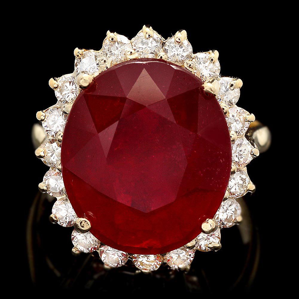 14k Yellow Gold 15.00ct Ruby 1.40ct Diamond Ring