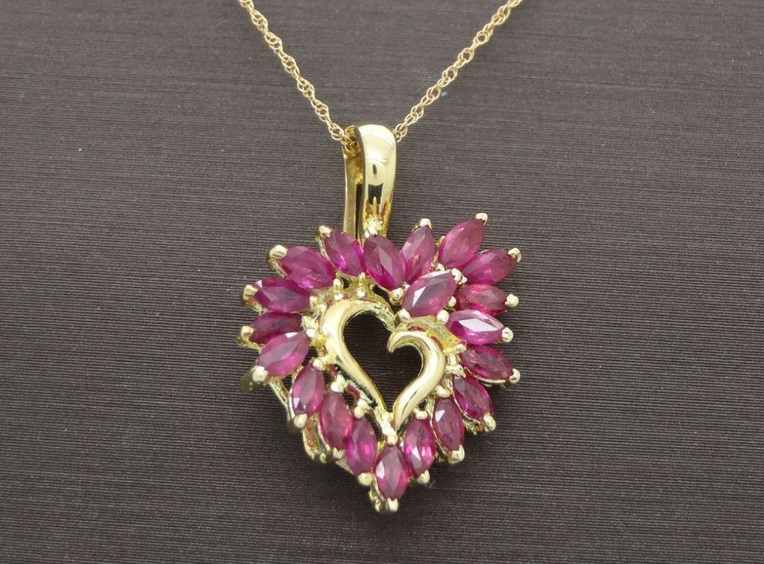 10K YELLOW GOLD DIAMOND & RUBY HEART PENDANT