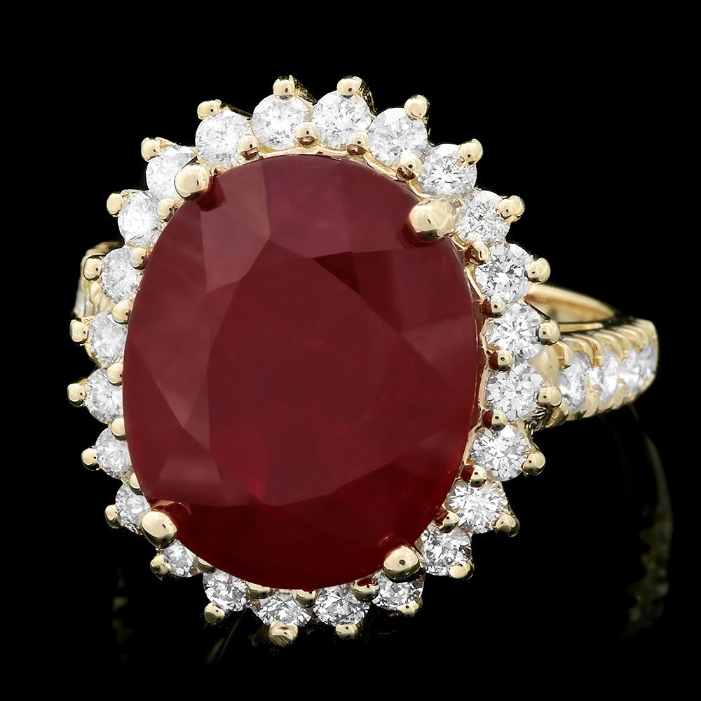 14k Yellow Gold 12.00ct Ruby 1.45ct Diamond Ring