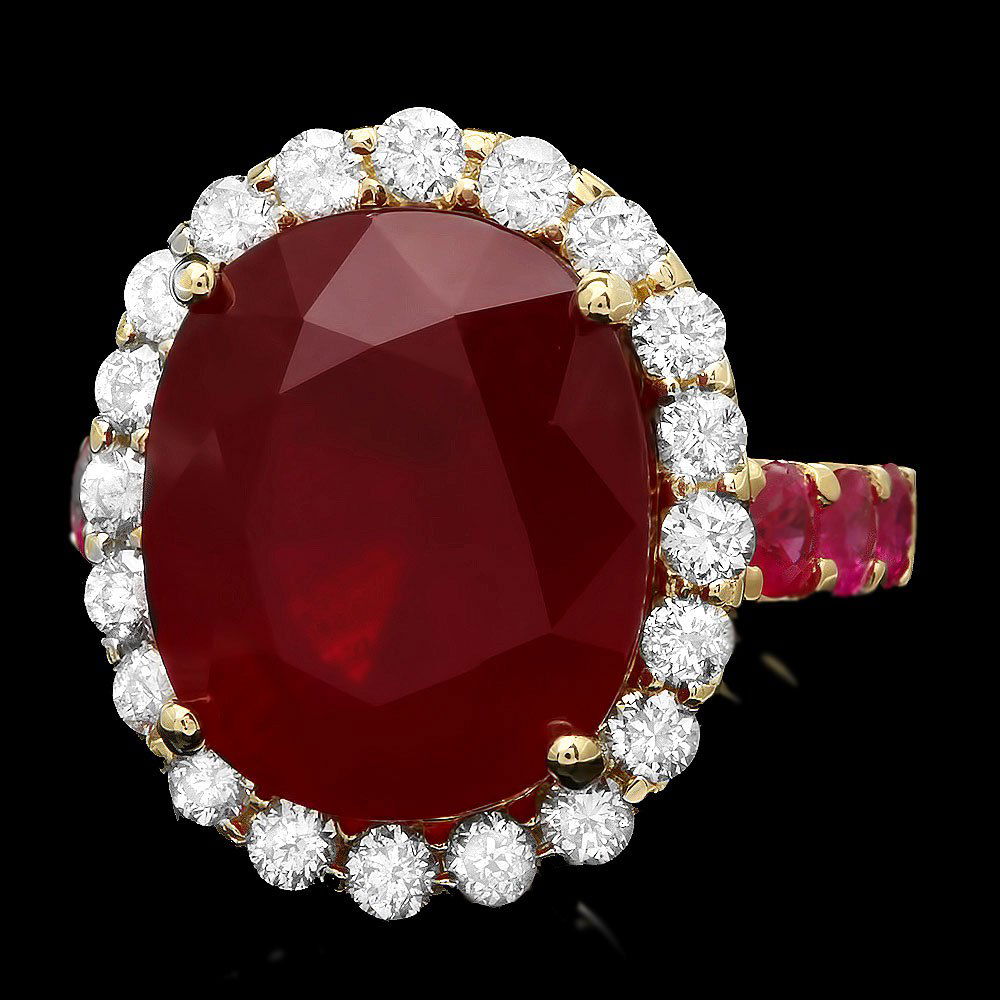 14k Yellow Gold 15.00ct Ruby 1.40ct Diamond Ring