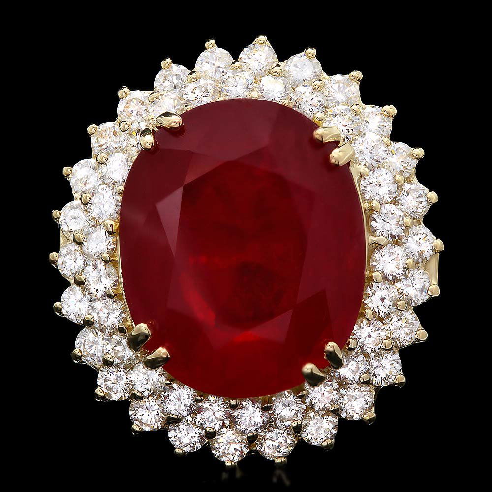 14k Yellow Gold 20.00ct Ruby 3.70ct Diamond Ring