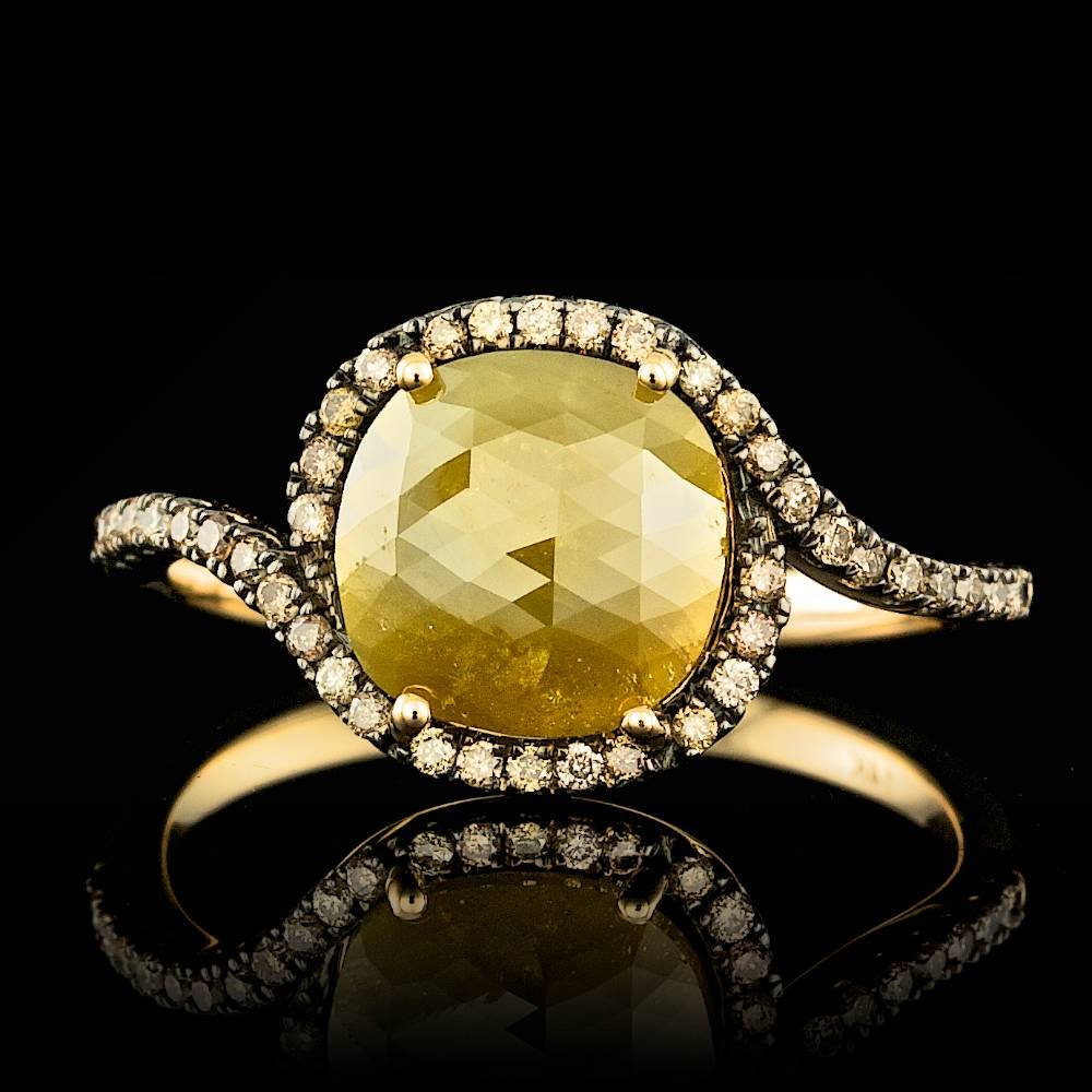 14k Gold 1.20 Ctw Natural Yellow Diamond & Diamond Ring