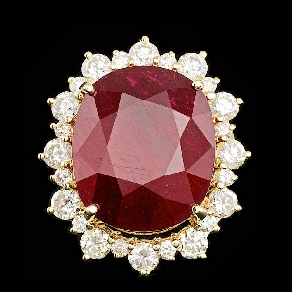 14k Yellow Gold 25.00ct Ruby 2.25ct Diamond Ring
