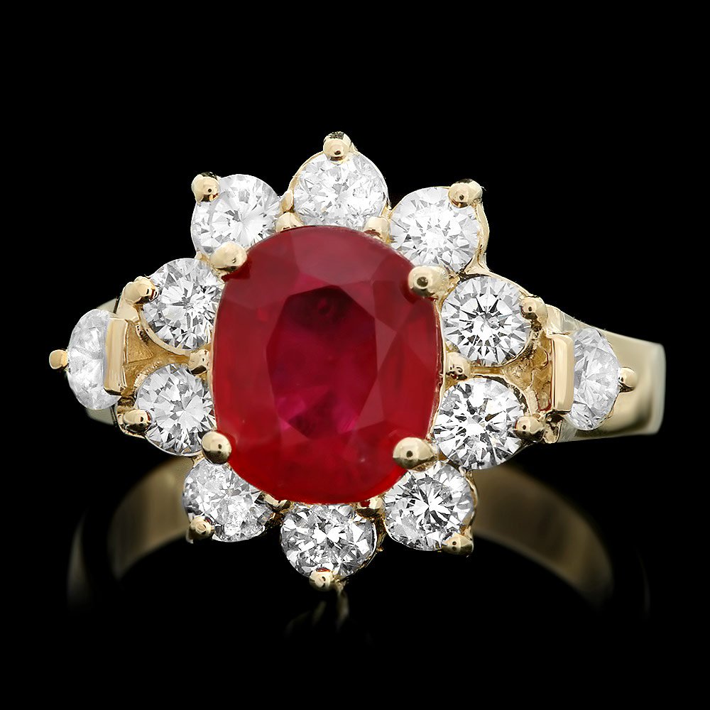 14k Yellow Gold 3.00ct Ruby 1.60ct Diamond Ring