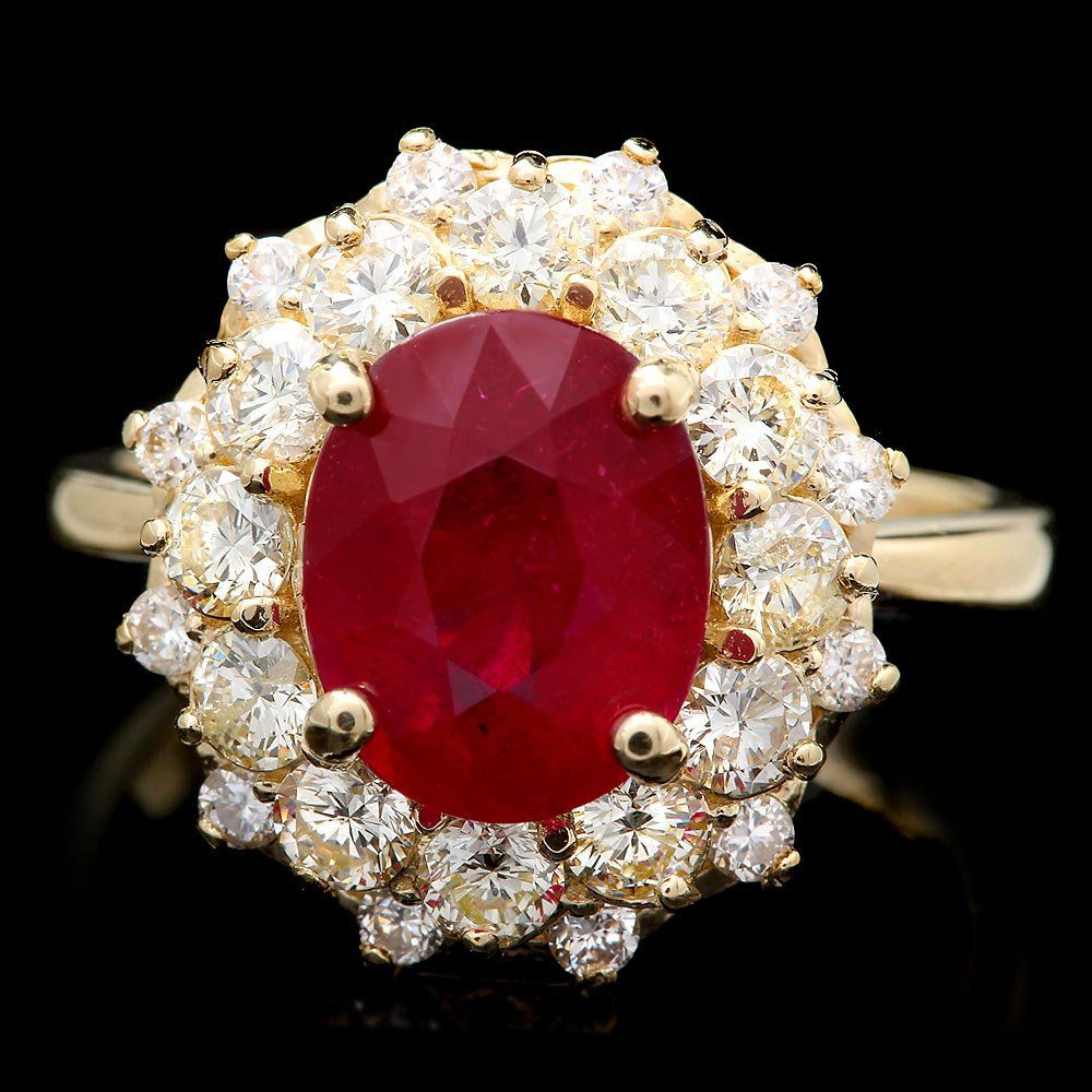 14k Yellow Gold 3.00ct Ruby 1.60ct Diamond Ring