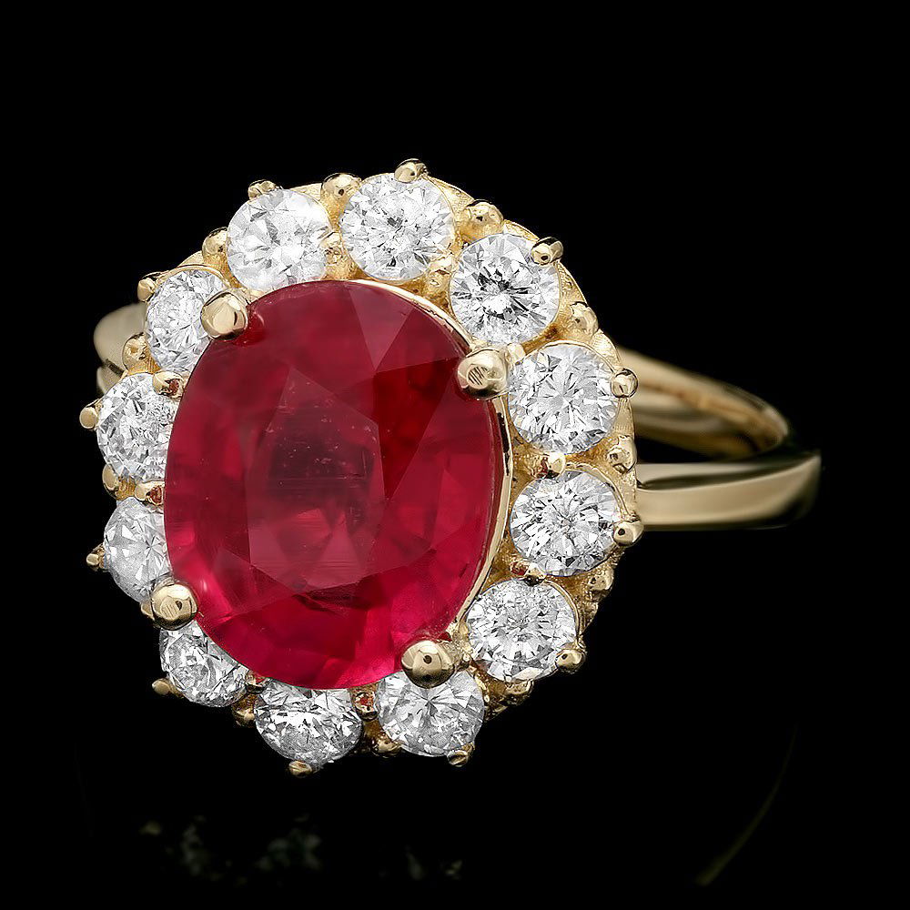 14k Yellow Gold 4.00ct Ruby 1.10ct Diamond Ring